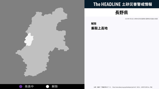 7月1日15時40分、長野県の土砂災害警戒情報が解除された