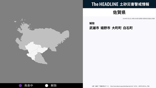 7月1日16時10分、佐賀県の土砂災害警戒情報が解除された