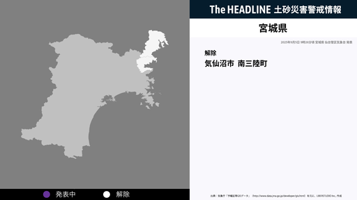 9月5日9時26分、宮城県の土砂災害警戒情報が解除された