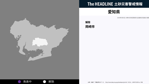 9月5日13時50分、愛知県の土砂災害警戒情報が解除された
