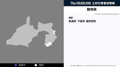 9月5日16時30分、静岡県の土砂災害警戒情報が解除された