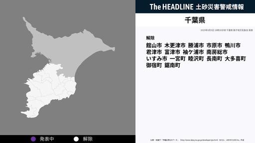 9月5日18時20分、千葉県の土砂災害警戒情報が解除された