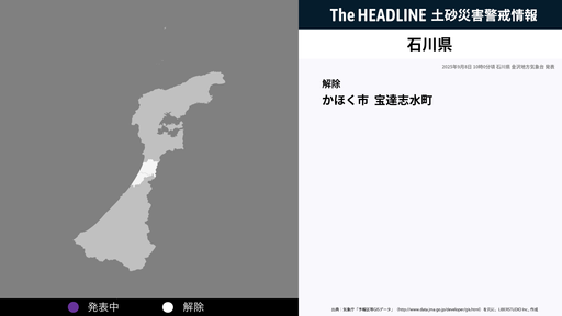 9月8日10時0分、石川県の土砂災害警戒情報が解除された
