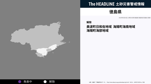 5月24日23時10分、徳島県の土砂災害警戒情報が解除された