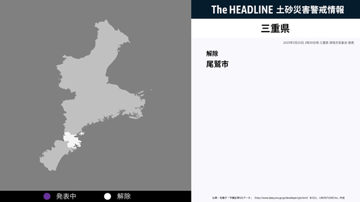 5月25日1時30分、三重県の土砂災害警戒情報が解除された