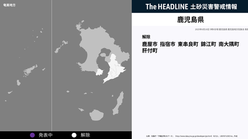 6月10日5時0分、鹿児島県の土砂災害警戒情報が解除された