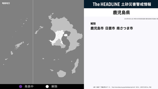 6月11日9時20分、鹿児島県の土砂災害警戒情報が解除された