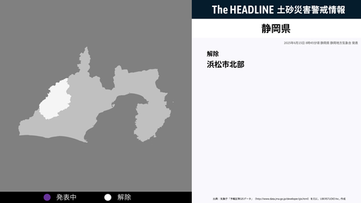 6月15日8時45分、静岡県の土砂災害警戒情報が解除された