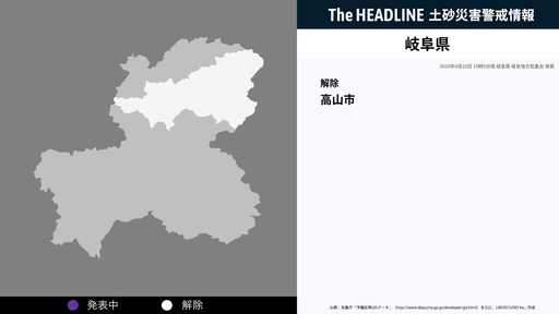 6月23日15時5分、岐阜県の土砂災害警戒情報が解除された
