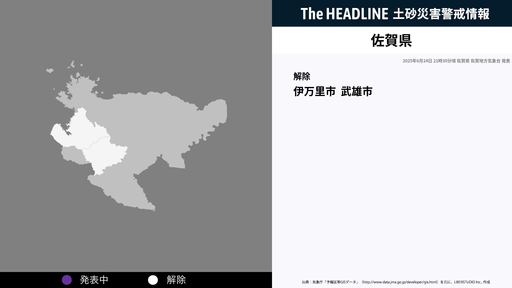 6月24日21時30分、佐賀県の土砂災害警戒情報が解除された