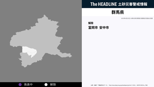6月25日21時0分、群馬県の土砂災害警戒情報が解除された