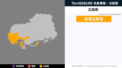 4月18日14時40分頃、広島県に高潮注意報が発表