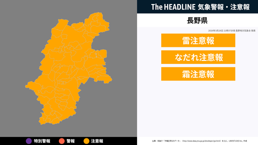 3月28日21時37分頃、長野県に雷注意報・なだれ注意報などが発表