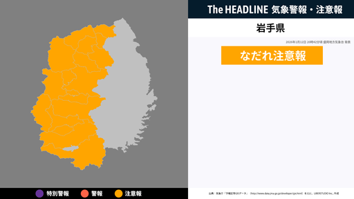 1月12日8時28分頃、岐阜県に大雪注意報・なだれ注意報などが発表