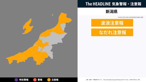 1月9日6時12分頃、新潟県に波浪注意報・なだれ注意報が発表
