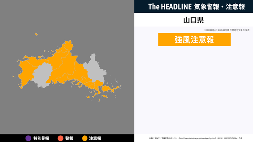4月4日20時43分頃、高知県に強風注意報・波浪注意報が発表