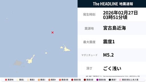 2月27日3時52分頃、沖縄県で最大震度1の地震を観測