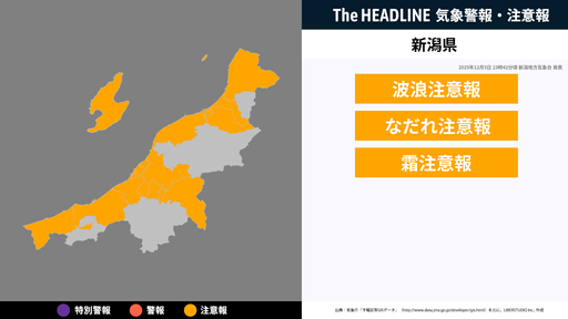 12月5日23時42分頃、新潟県に波浪注意報・なだれ注意報などが発表