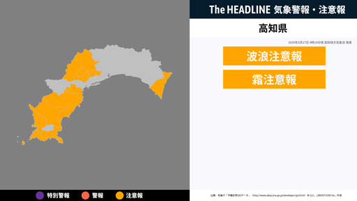 3月27日4時14分頃、高知県の波浪注意報・霜注意報が更新