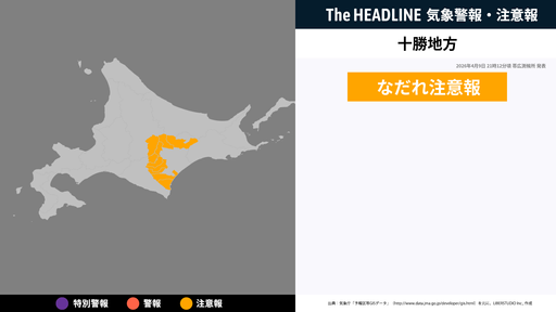 4月9日21時12分頃、十勝地方になだれ注意報が発表