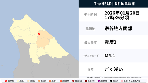1月20日17時36分頃、北海道で最大震度2の地震を観測