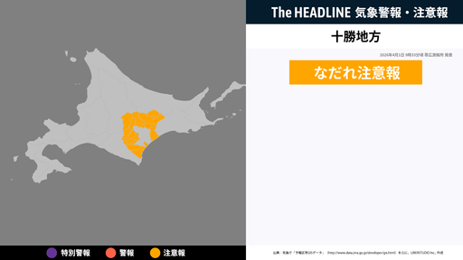 4月1日9時33分頃、十勝地方になだれ注意報が発表