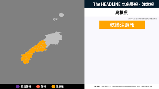 1月17日10時7分頃、島根県に乾燥注意報が発表