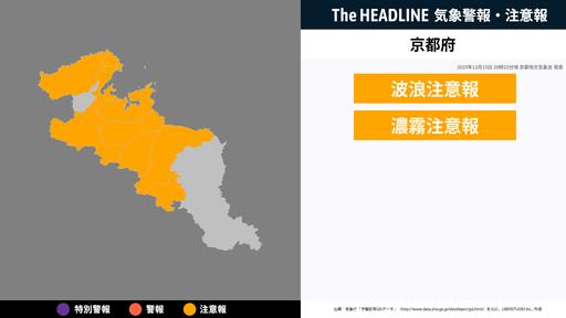 12月15日20時23分頃、京都府に波浪注意報・濃霧注意報が発表