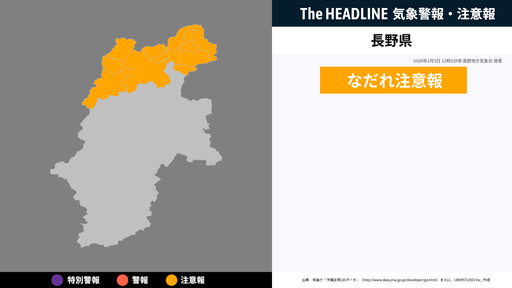 1月3日12時2分頃、長野県になだれ注意報が発表