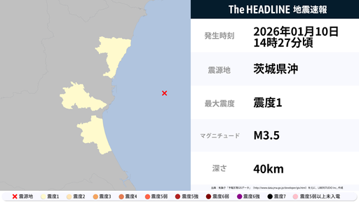 1月10日14時27分頃、茨城県で最大震度1の地震を観測