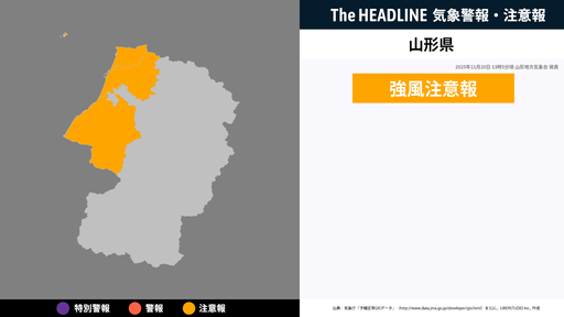 11月20日13時8分頃、山口県の強風注意報・乾燥注意報が更新