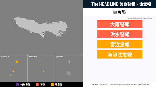 10月19日23時0分、東京都に土砂災害警戒情報が発表された