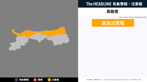 1月21日10時14分頃、鳥取県に大雪注意報・風雪注意報などが発表
