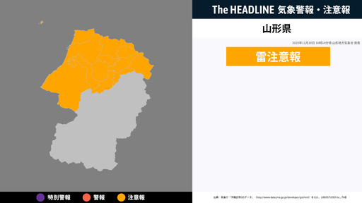 11月30日16時13分頃、岩手県に雷注意報が発表