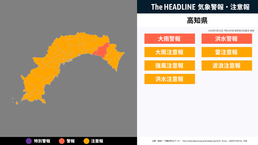 現在発表されている警報・注意報