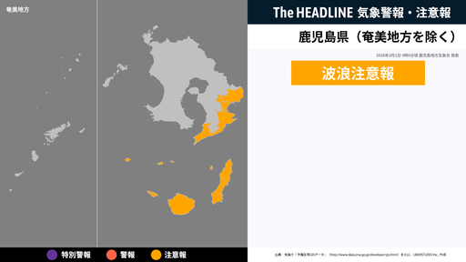 3月1日22時10分頃、奄美地方の波浪注意報が更新