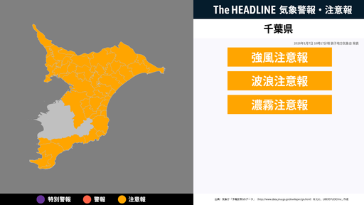 1月7日16時17分頃、千葉県に強風注意報・波浪注意報などが発表