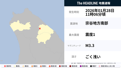 1月28日11時6分頃、北海道で最大震度1の地震を観測