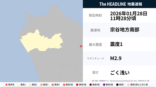 1月28日11時28分頃、北海道で最大震度1の地震を観測