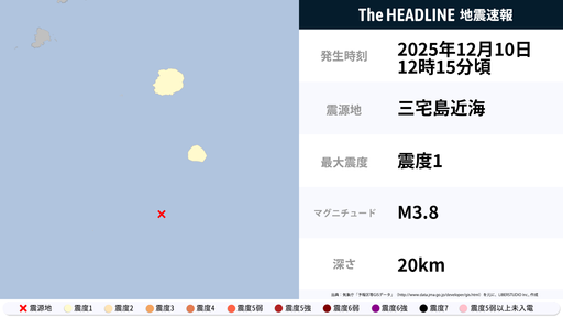 12月10日12時15分頃、東京都で最大震度1の地震を観測