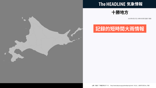 6月27日15時39分、十勝地方の記録的短時間大雨情報が更新