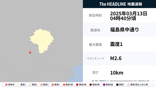 3月13日4時40分頃、福島県で最大震度1の地震を観測