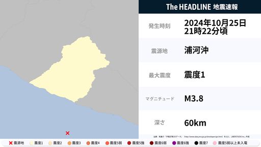 10月25日21時22分頃、北海道で最大震度1の地震を観測
