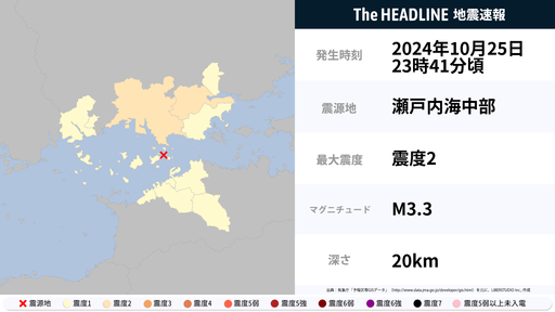 10月25日23時41分頃、岡山県で最大震度2の地震を観測