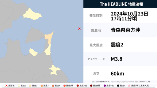 10月23日17時11分頃、青森県で最大震度2の地震を観測