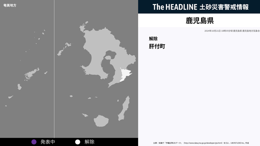 10月21日18時35分、鹿児島県の土砂災害警戒情報が解除された