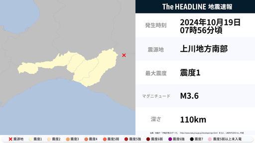 10月19日7時56分頃、北海道で最大震度1の地震を観測