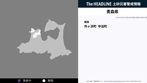 10月19日10時22分、青森県の土砂災害警戒情報が解除された