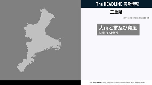三重県、大雨と雷及び突風に関する気象情報が更新