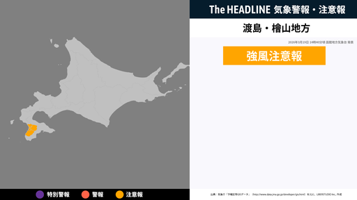 3月19日14時40分頃、檜山地方に強風注意報が発表